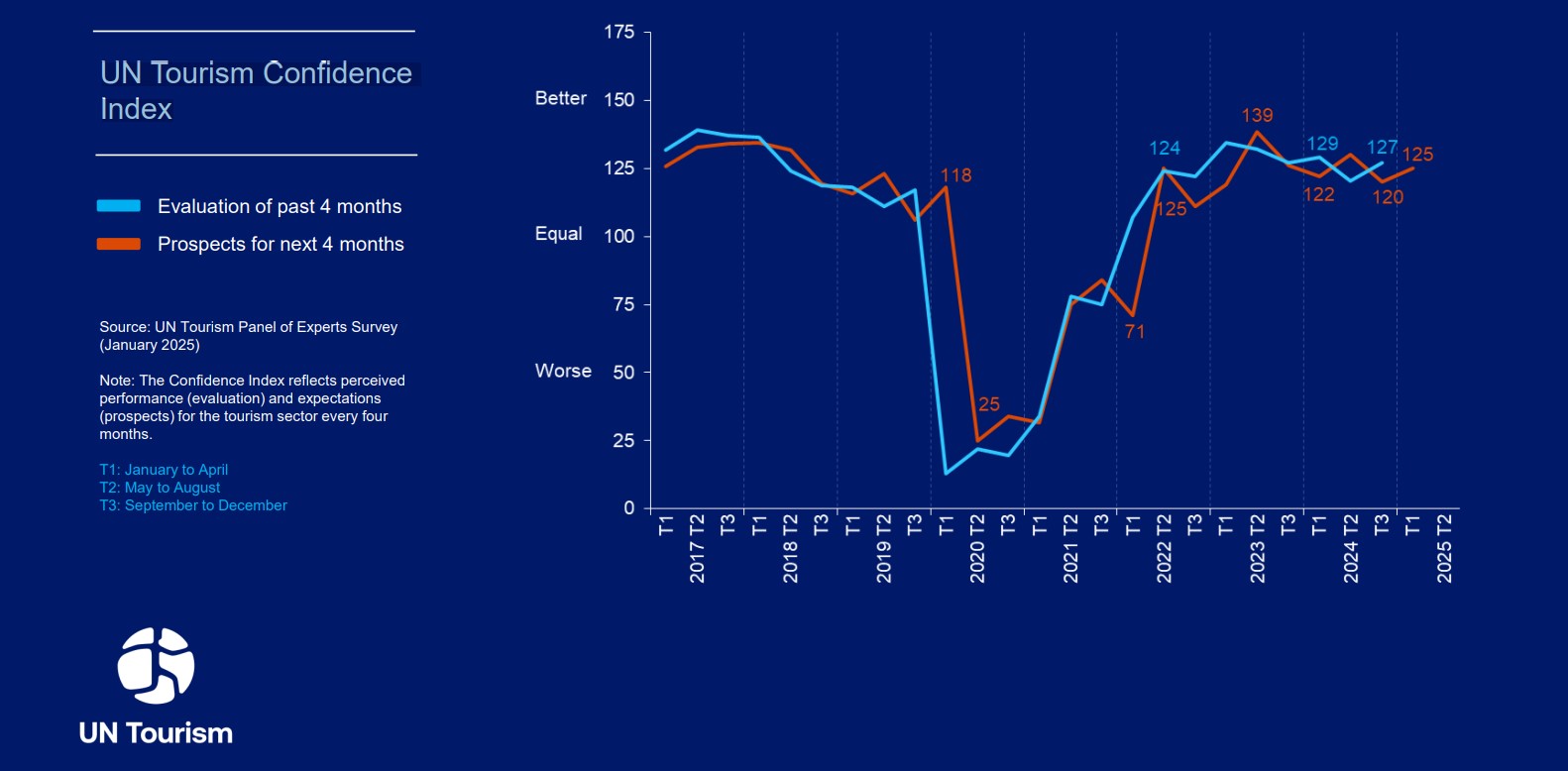 Οι θετικές προοπτικές για τον κλάδο αντικατοπτρίζονται στον τελευταίο Δείκτη Τουριστικής Εμπιστοσύνης, με βαθμολογία 130 για το 2025 (με βάση μια κλίμακα από το 0 έως το 200, όπου το 100 ισούται με παρόμοιες επιδόσεις).
