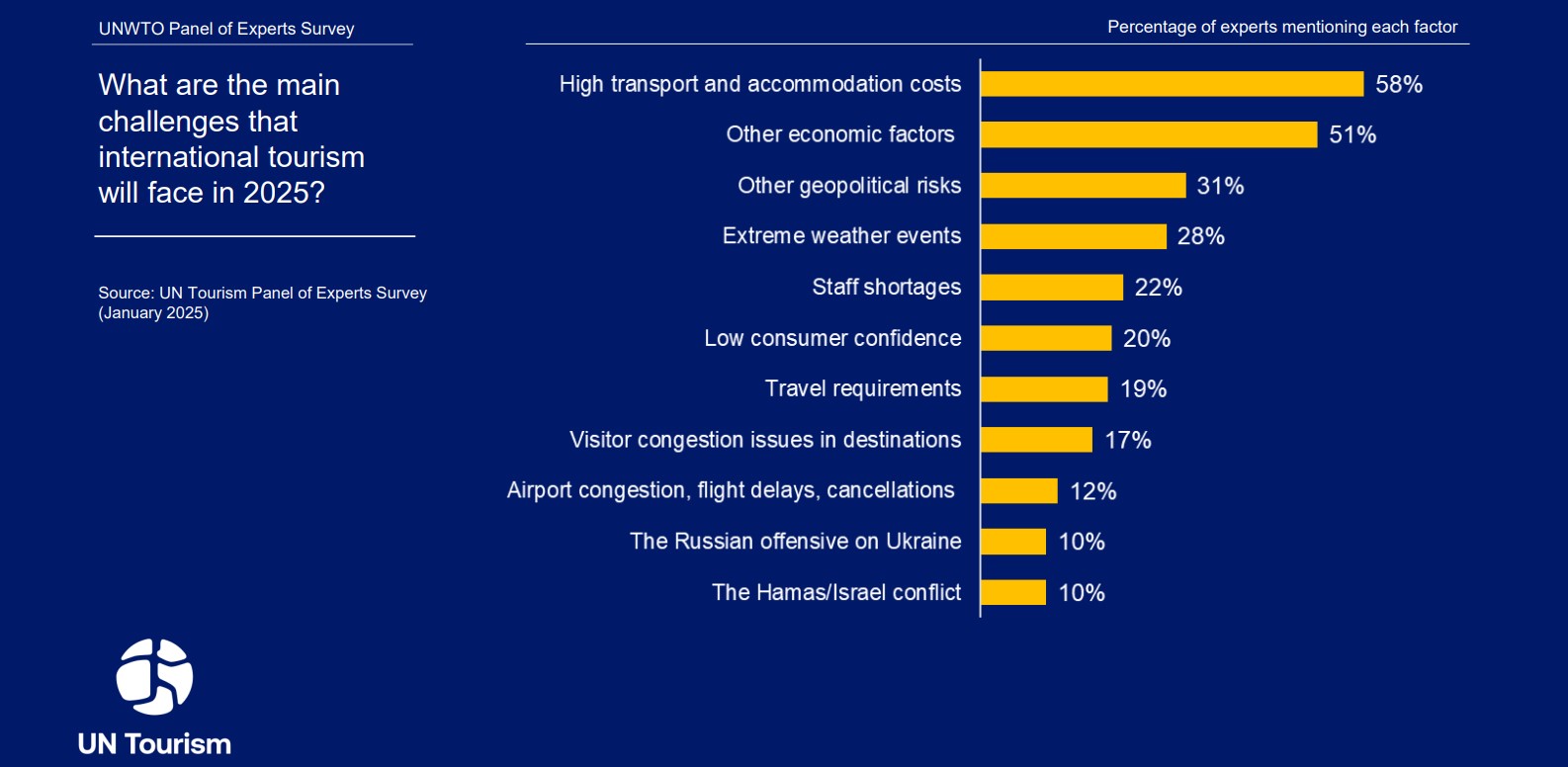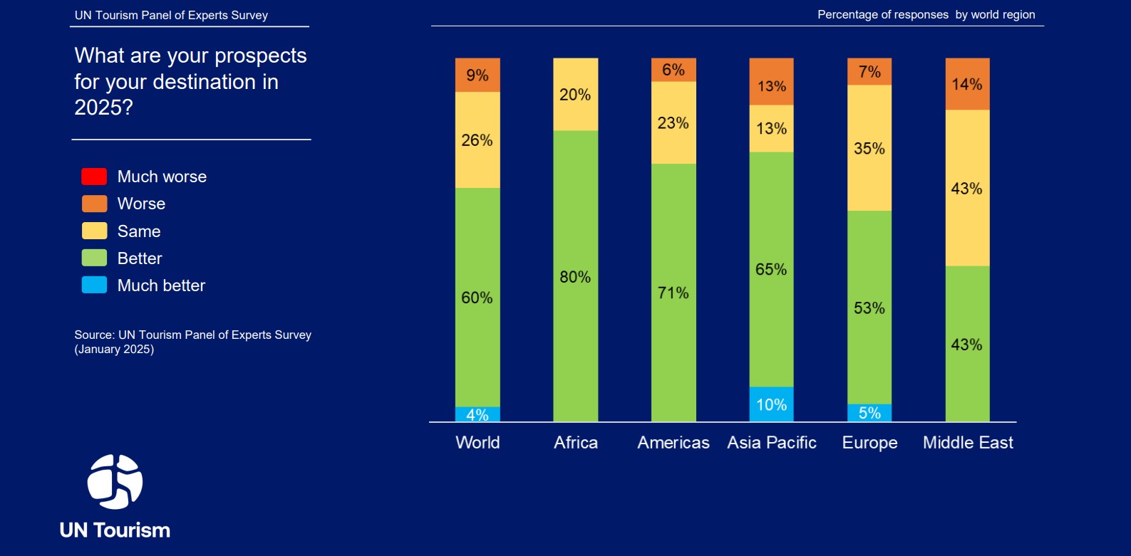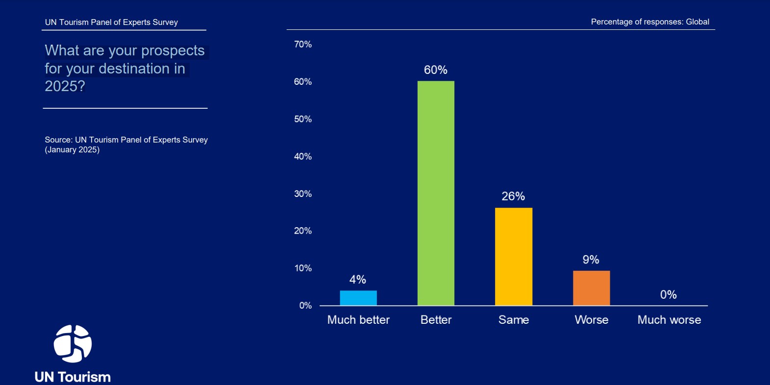 Περίπου το 64% της Ομάδας Εμπειρογνωμόνων Τουρισμού του ΟΗΕ υποδηλώνει «καλύτερες» ή «πολύ καλύτερες» προοπτικές φέτος, σε σύγκριση με το 2024.